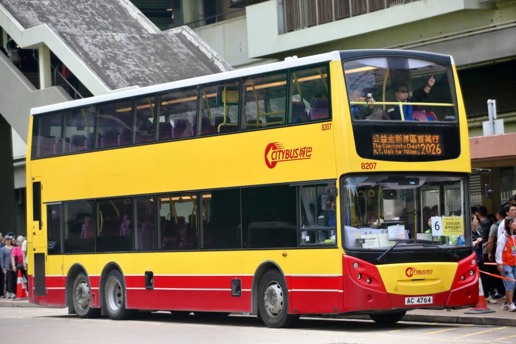 匯達交通城巴 城巴贊助3月22日「公益金新界區百萬行」穿梭巴士 By Bus Boy on 2026-03-22 香港公益金新界區百萬行於 2026 年 3 月 22 日舉行,步行路線由粉嶺北石湖新村,行經粉嶺繞道(東段)。由於起步點仍未開放,故此大會安排穿梭巴士由港鐵粉嶺往來石湖新村。穿梭巴士由城巴贊助。 攝影:Alan Wong 攝影:Alan Wong 攝影:Alan Wong 攝影:Alan Wong 攝影:Alan Wong 攝影:Alan Wong 攝影:Alan Wong 由於起步點還未開放,故此參與活動的巴士需領有限制區許可證 (攝影:Alan Wong) Share this FacebookWhatsAppLINEXLinkedinEmailPrint Tags Citybus 不可不看 機場二號客運大樓:從 P22 到三跑道時代 2007 年第一代 T2 啟用時,城巴開辦了P22路線,晚間單向由一號客運大樓 8 樓落客區前往二號客運大樓,提供鐵路以外另一種選擇。 兩軸富豪 Volvo B9TL 4x 2 政府為了讓專利巴士使用兩軸雙層空調巴士,放寬了兩軸雙層巴士總負重。於是,Volvo Bus 為香港帶來了兩軸 B9TL。 9149–9158:在變局中漂流的十個車隊編號 城巴十部 11.3 米 Enviro500 MMC Facelift 經歷復古塗裝、疫情封存、易手改編、港鐵購入與編號復舊,六年間命運多舛。 - Advertisement - 最新文章 機場二號客運大樓:從 P22 到三跑道時代 政府批出古洞北及粉嶺北巴士營運權予九巴 兩軸富豪 Volvo B9TL 4x 2 ADL再次提出關閉Falkirk廠房 9149–9158:在變局中漂流的十個車隊編號 載通國際2025年賺1.87億港元 相關文章 機場二號客運大樓:從 P22 到三跑道時代 兩軸富豪 Volvo B9TL 4x 2 9149–9158:在變局中漂流的十個車隊編號 香港公共交通機構及創科企業成立「智慧交通聯盟」